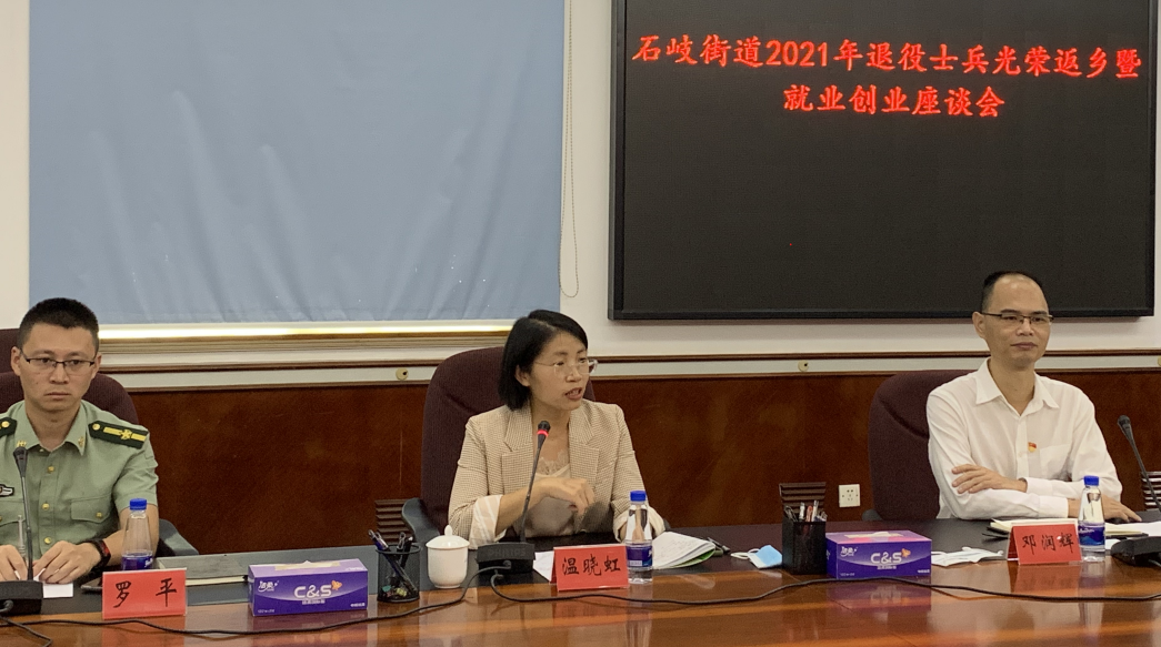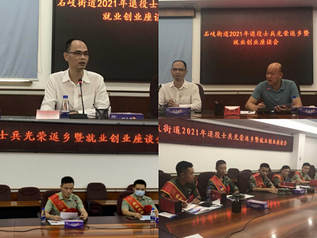 9月24日下午,石岐街道辦事處舉辦“2021年退役士兵光榮返鄉(xiāng)暨就業(yè)創(chuàng)業(yè)座談會”,歡迎今年光榮返鄉(xiāng)的士兵。街道辦事處副主任溫曉虹,公共服務(wù)辦、武裝部、退役軍人服務(wù)中心負責人以及今年秋季退役士兵一同參加了座談會。