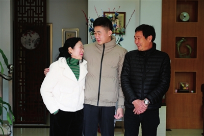 南朗“準(zhǔn)新兵”程俊楠(中)和父母的合照。本報記者 易承樂 攝