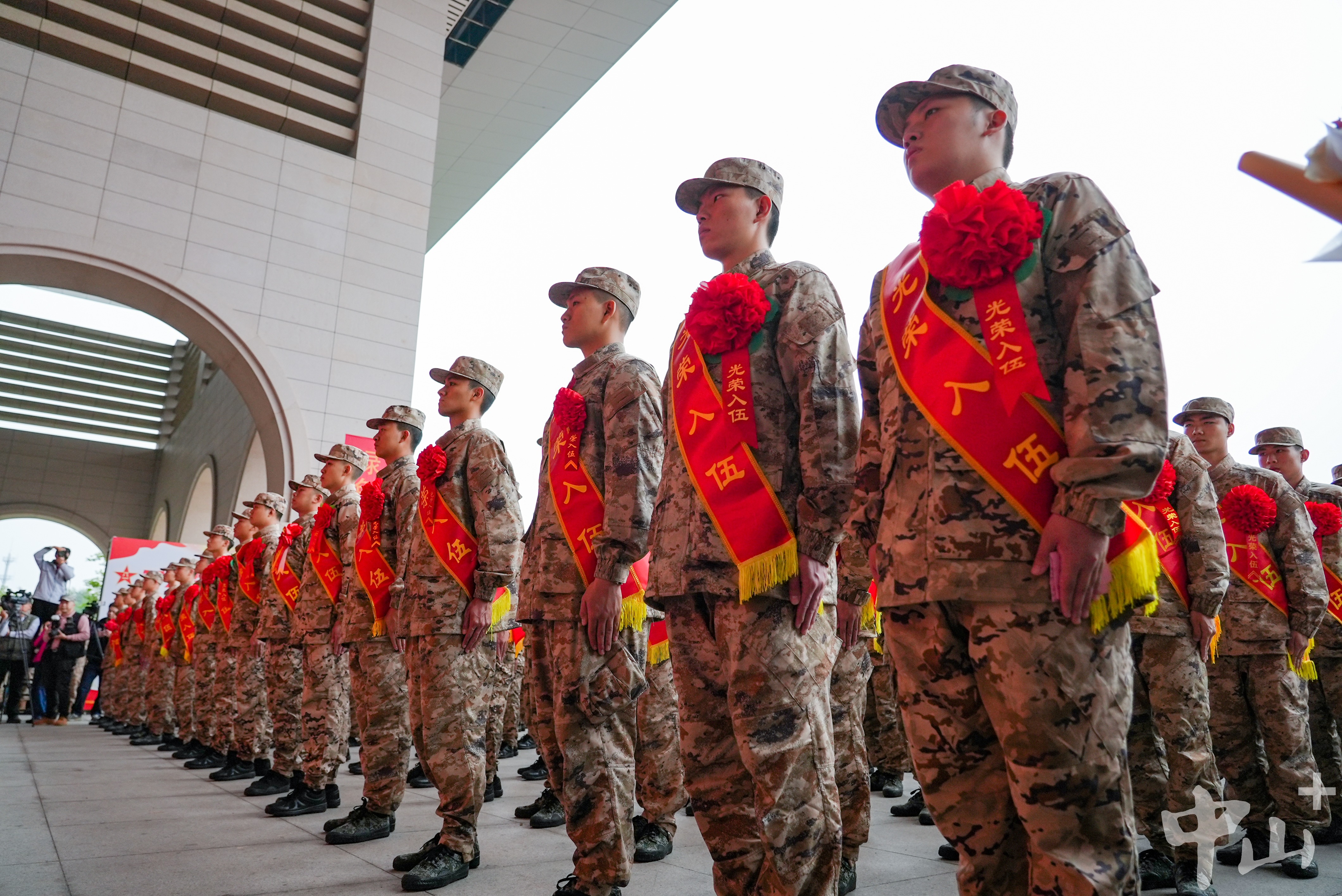 青春獻給國防,熱血報效祖國。 3月16日早上,中山市2024年上半年入伍新兵歡送大會在城軌中山站的進站廣場舉行。300多名適齡青年經(jīng)過嚴格的體檢和政考,即將邁入軍營。 3月16日早上,中山市2024年上半年入伍新兵歡送大會在城軌中山站的進站廣場舉行。記者 易承樂 攝