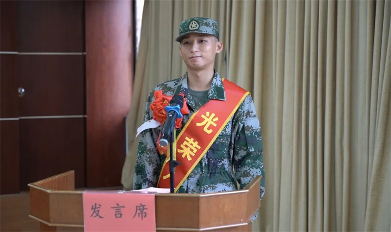▲新兵家長(zhǎng)代表邱培岳發(fā)言。通訊員 提供