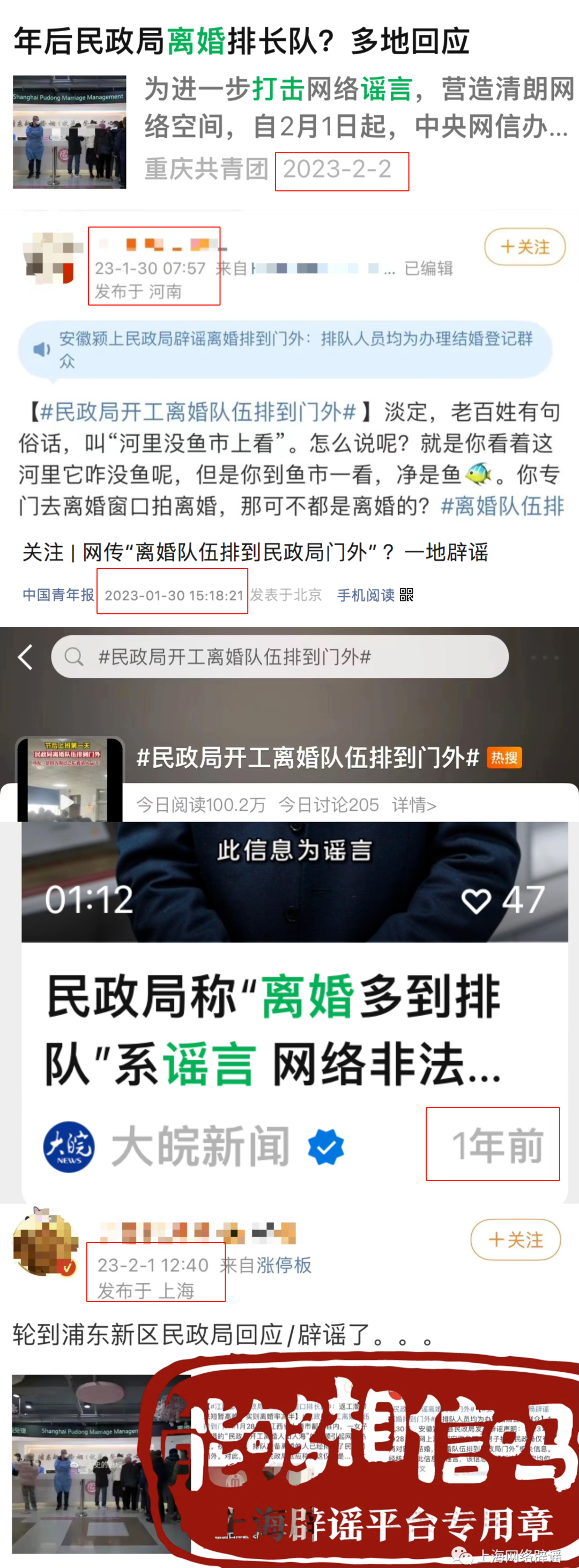 2024年2月18日,王某到安徽省淮南市壽縣政務(wù)服務(wù)中心辦理結(jié)婚登記,在復(fù)印材料和拍照的文印室拍攝了一段多人排隊的視頻,配文稱“開年第一天離婚的比結(jié)婚的多”,編造謠言在短視頻平臺發(fā)布,多家媒體報道,引發(fā)網(wǎng)民熱議,造成惡劣社會影響。