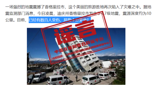 謠 言 云南迪慶香格里拉市4.7級(jí)地震中,有數(shù)百人受傷?