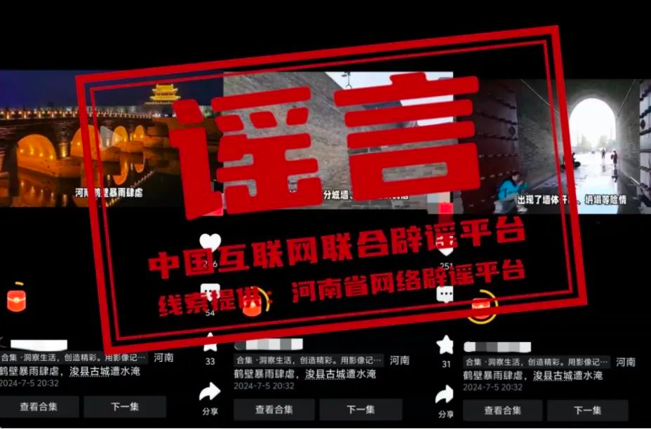 真相:近日,有網(wǎng)民在網(wǎng)絡(luò)平臺(tái)發(fā)布內(nèi)容為“河南鶴壁暴雨肆虐,??h古城遭水淹”的視頻信息,引發(fā)社會(huì)關(guān)注。經(jīng)核實(shí),7月5日??h出現(xiàn)暴雨天氣,強(qiáng)降雨期間??h古城北大街、東城門廣場等處出現(xiàn)積水情況,經(jīng)過積極排澇,雨停后路面積水很快被排空,恢復(fù)正常通行,不存在視頻中所說的“古城風(fēng)貌受損嚴(yán)重”“古城內(nèi)的部分城墻、古街巷出現(xiàn)不同程度的損毀”“古城墻出現(xiàn)了墻體開裂、坍塌等險(xiǎn)情”“古城內(nèi)的博物館、紀(jì)念館等文化設(shè)施也遭受不同程度的損失”等現(xiàn)象。該視頻多為當(dāng)?shù)嘏f聞及外地視頻嫁接拼湊。目前,??h古城秩序正常。(來源:河南省網(wǎng)絡(luò)辟謠平臺(tái)、浚縣古城保護(hù)建設(shè)服務(wù)中心)