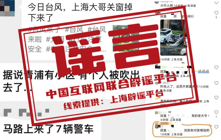 真相:臺(tái)風(fēng)“貝碧嘉”影響上海期間,社交平臺(tái)和部分聊天群出現(xiàn)上海某小區(qū)居民被臺(tái)風(fēng)從高樓吹落的消息,有的說在青浦區(qū)、有的說在閔行區(qū)。經(jīng)核查,該視頻內(nèi)容系外省市有人輕生跳樓。個(gè)別違法人員在不知道事發(fā)地點(diǎn)和墜樓原因的情況下,為博取流量而張冠李戴,將事發(fā)地編撰為上海浦東、閔行、青浦等地,并發(fā)布在網(wǎng)上,引起群眾恐慌,造成惡劣社會(huì)影響。目前,8名編造傳播謠言的違法人員均已被警方依法處罰。(來源:“上海網(wǎng)絡(luò)辟謠”微信公眾號(hào))