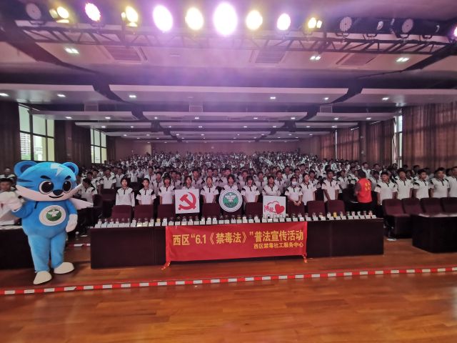 活動過程中,西區(qū)禁毒社工以禁毒故事真人圖書館的形式,向?qū)W生們介紹了毒品的來歷,再結(jié)合現(xiàn)場講解毒品知識,通過有獎問答環(huán)節(jié)讓同學們深刻的認識到毒品對個人、家庭以及社會帶來的嚴重危害,增強拒毒、防毒的能力,為打贏新時代禁毒人民戰(zhàn)爭貢獻力量。隨后禁毒社工帶領全體學生進行莊嚴宣誓,宣誓完畢后,社工利用禁毒模具現(xiàn)場為學生們講解毒品種類和危害,分享戒毒康復實例,西區(qū)街道禁毒社工讓學生們在互動過程中潛移默化學習禁毒基本知識,寓教于樂。